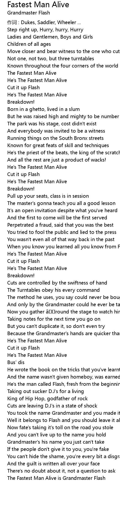 | The Fastest Man Alive is Grandmaster Flash |