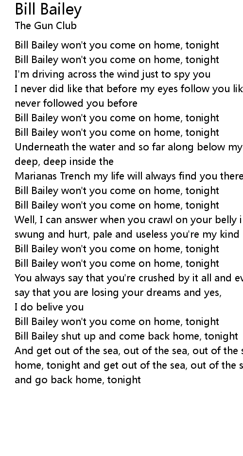 Bill Bailey won't you come on home, tonight |