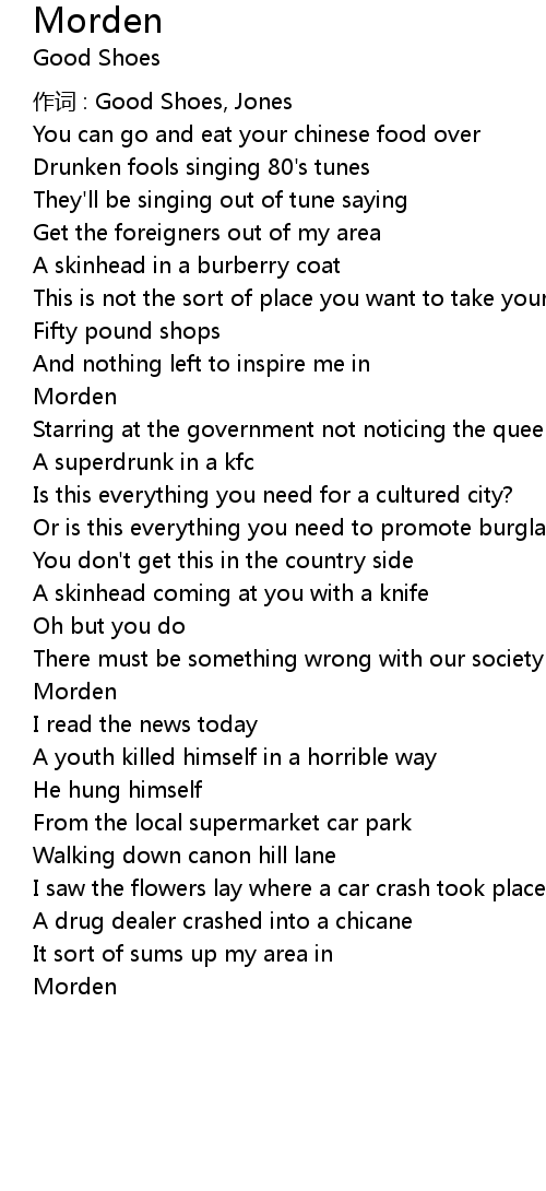| 作词 : Good Shoes, Jones | |
