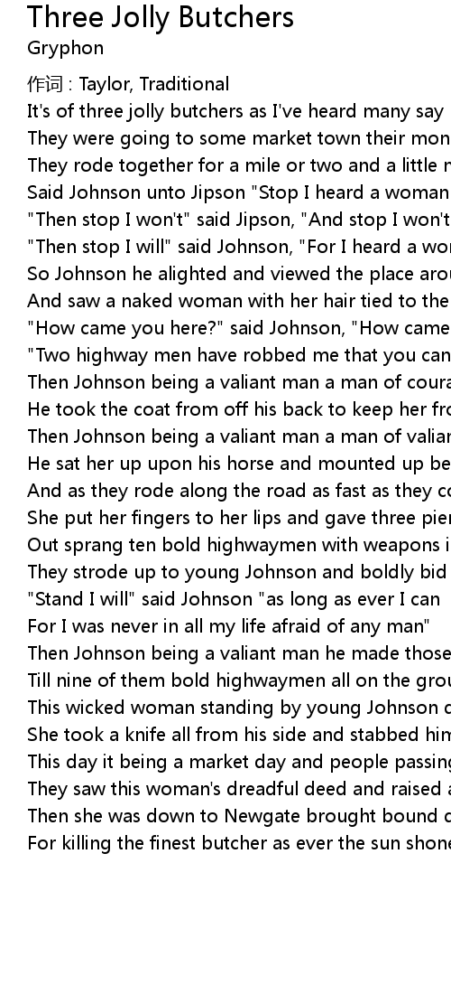 | It' s of three jolly butchers as I' ve heard many say | |