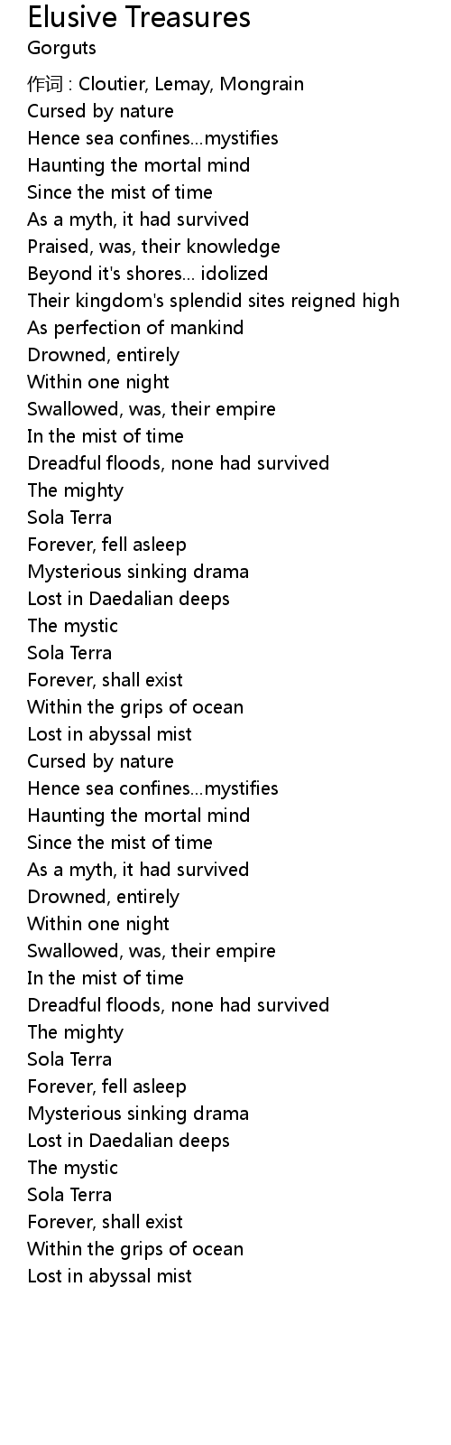 | 歌曲 | Elusive Treasures |
