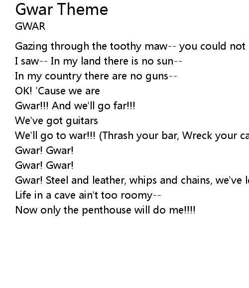 | Gwar! Steel and leather, whips and chains, we've learned how to enjoy pain! | |