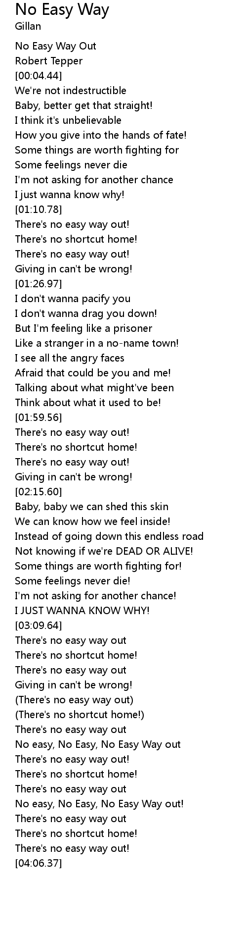 [03:51.61] No easy, No Easy, No Easy Way out!