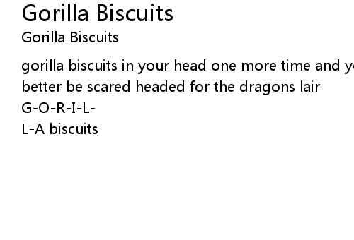 gorilla biscuits in your head one more time and youll be dead better watch out, better be scared headed for the dragons lair