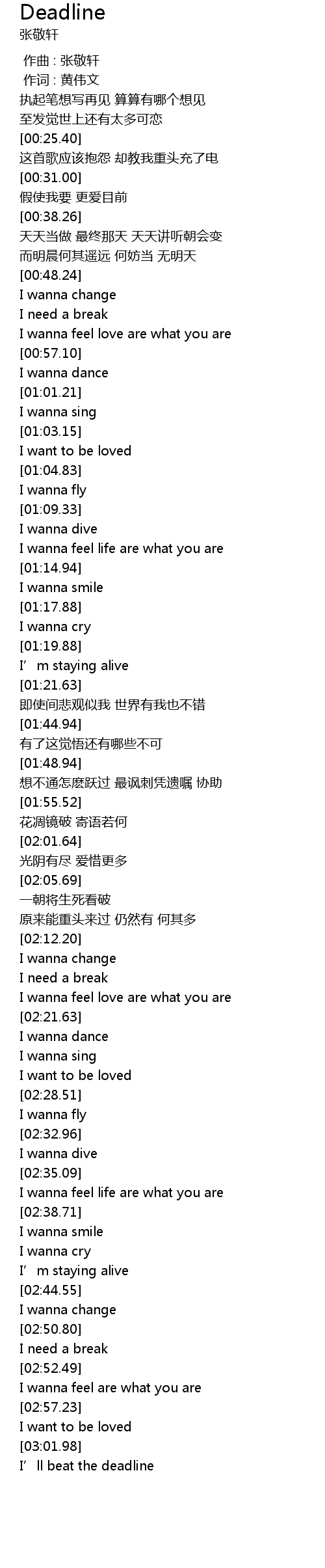 | [00:38.94] | 天天当做 最终那天 天天讲听朝会变 |