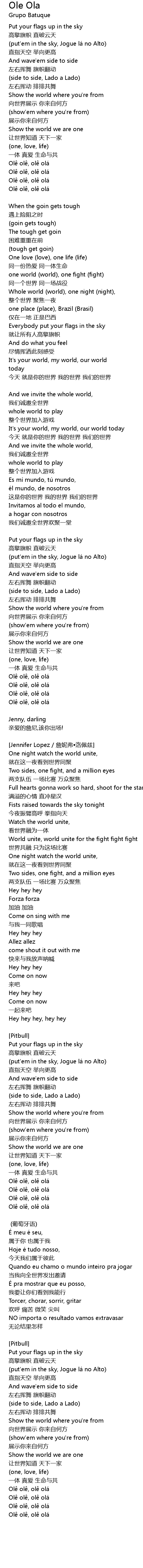 | 歌曲 | Ole Ola |