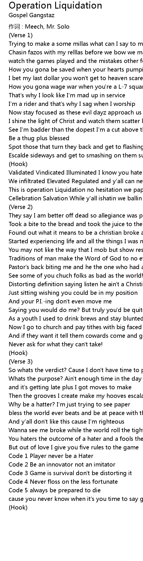 | 歌曲 | Operation Liquidation |