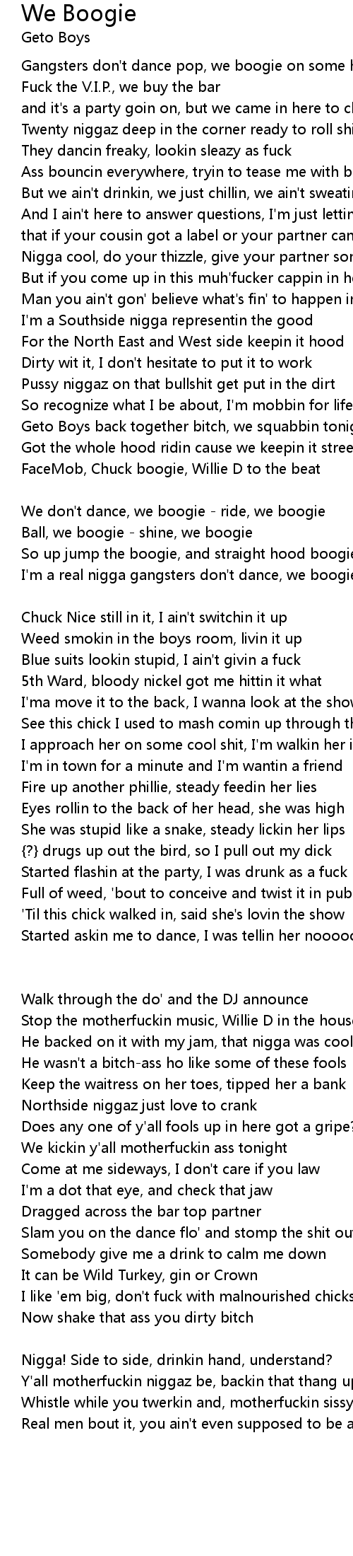 I'm a real nigga gangsters don't dance, we boogie |