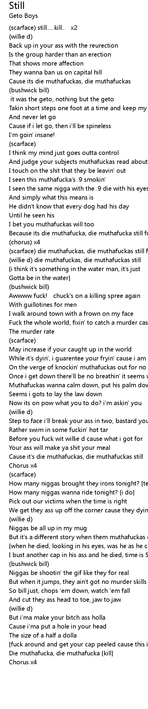 | (willie d) die muthafuckas, die muthafuckas still | |