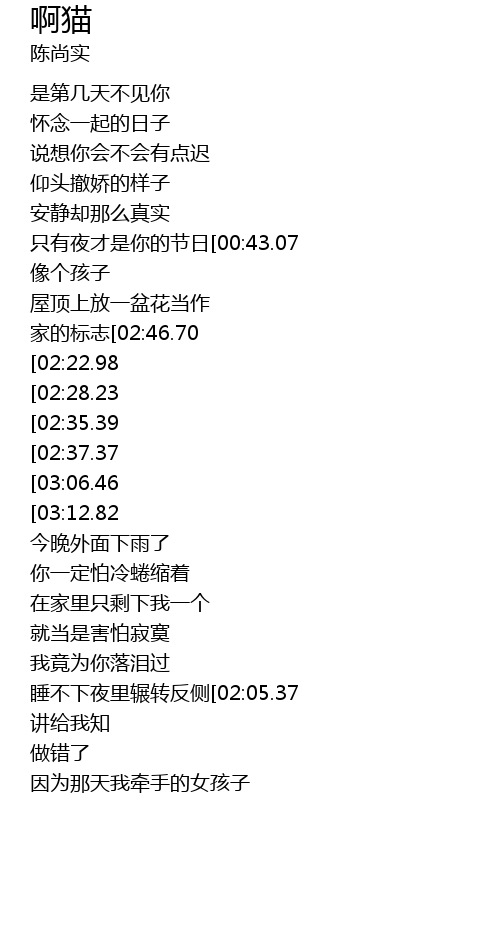 | [03:17.35][03:06.46][02:41.41][01:18.79] | 我现在认输了快回来 |