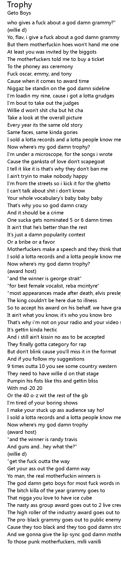 The god damn geto boys for most fuck words in a song