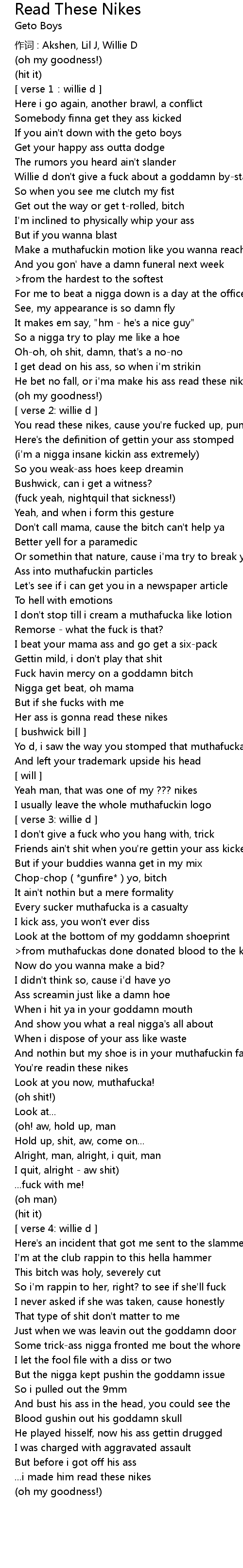 | He bet no fall, or i' ma make his ass read these nikes | |