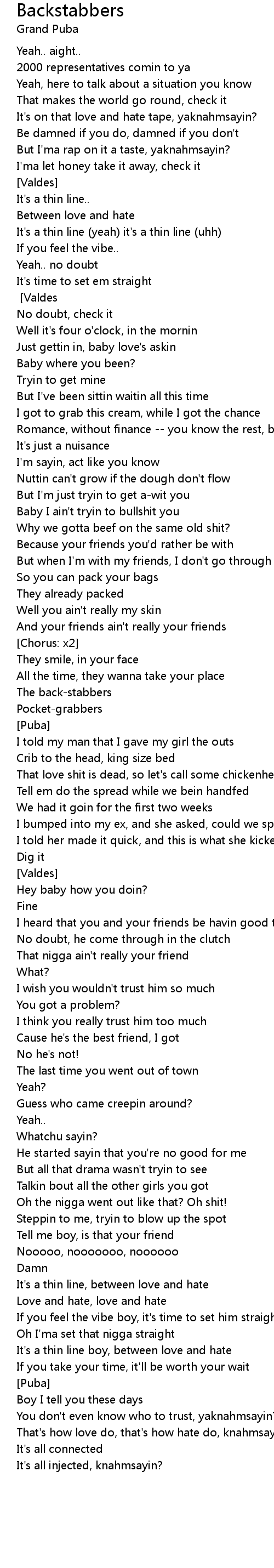 It's on that love and hate tape, yaknahmsayin? |