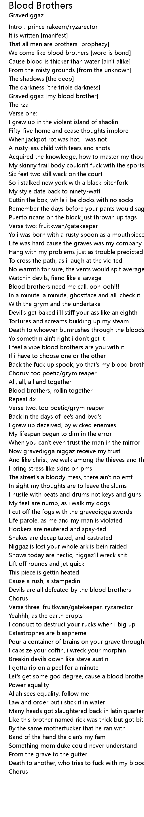 | Gravediggaz my blood brother | |