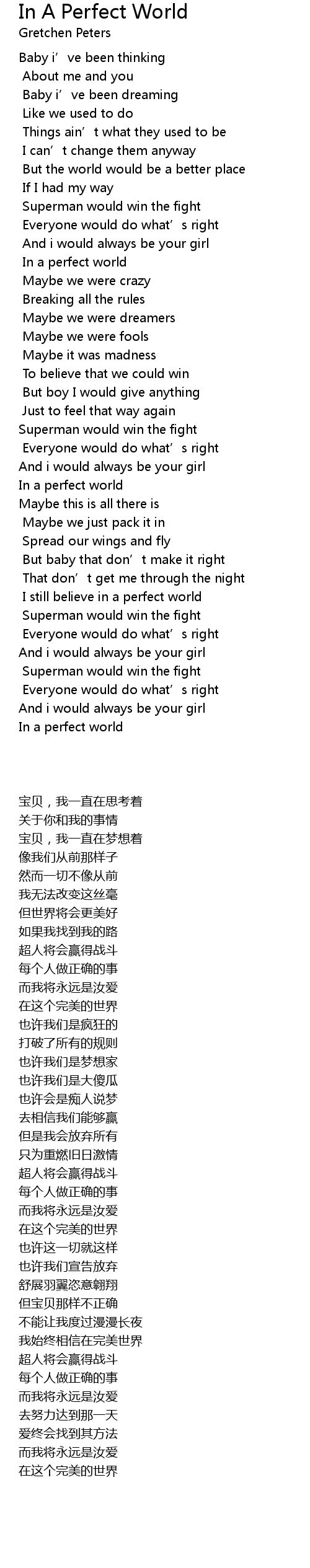 | 歌曲 | In A Perfect World |