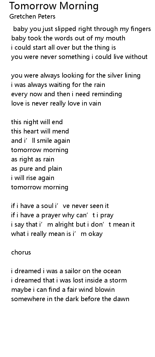 | 歌曲 | Tomorrow Morning |