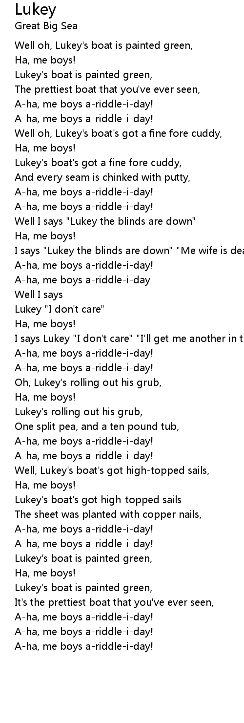 Well, Lukey's boat's got high-topped sails,