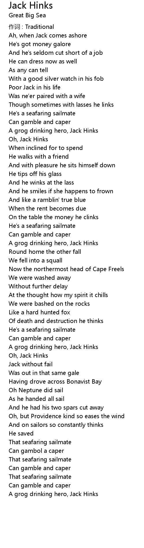 | 歌曲 | Jack Hinks |