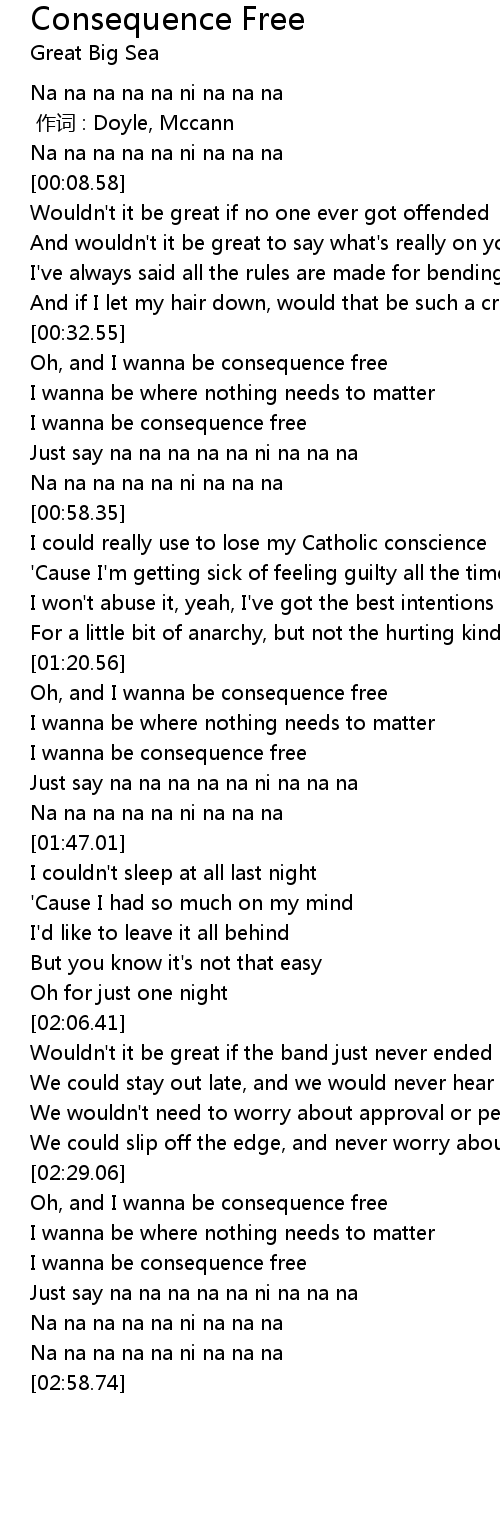 | [00:43.20] | I wanna be consequence free |