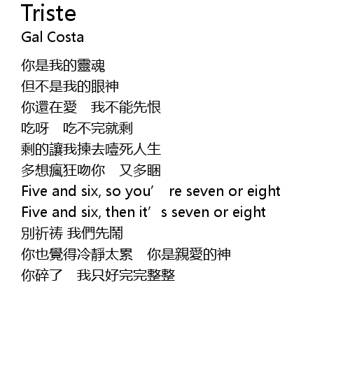 | [01:55.80] | Five and six, then it' s seven or eight |