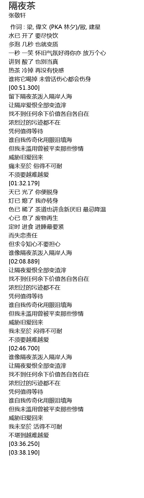 | [00:36.800] | 热茶 冷掉 再没有快感 |