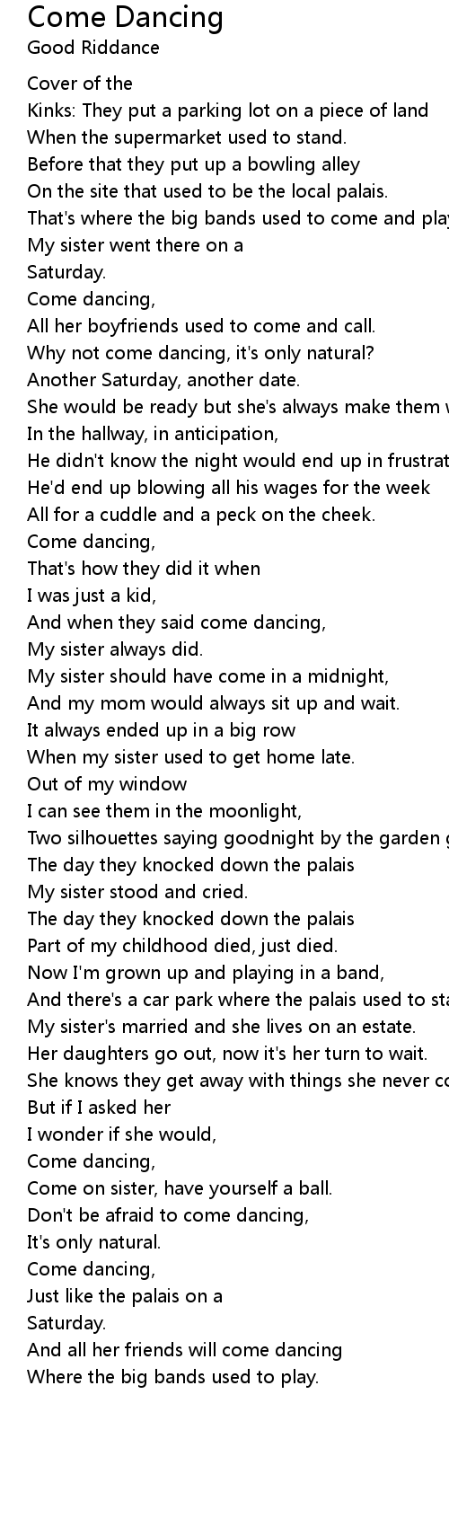 Come dancing, |