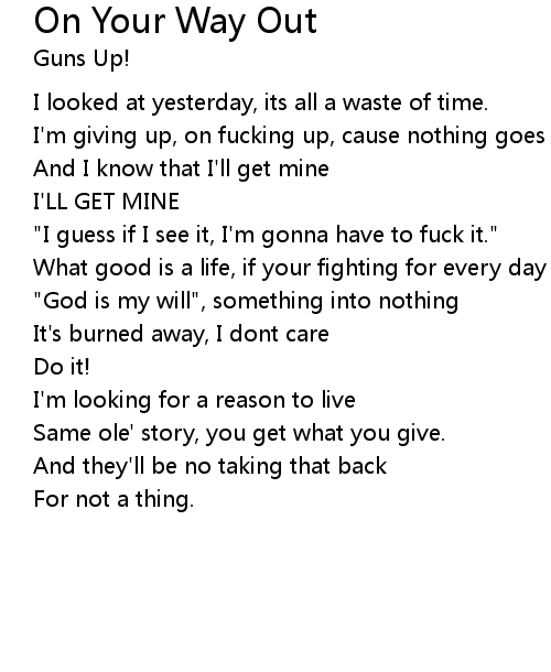 | I'm giving up, on fucking up, cause nothing goes my way. | |