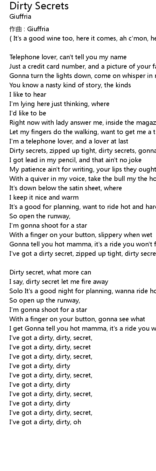 | I' ve got a dirty secret, zipped up tight, dirty secret, gonna let it out tonight | |