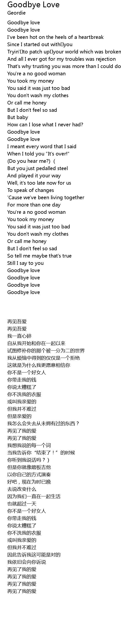 | 歌曲 | Goodbye Love |