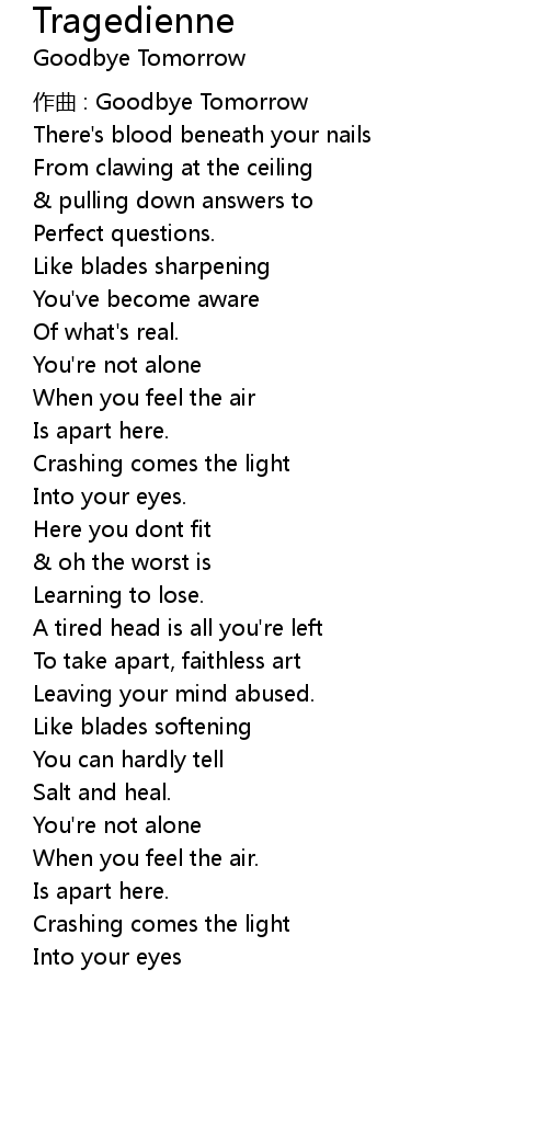 | zuò qǔ : Goodbye Tomorrow | |