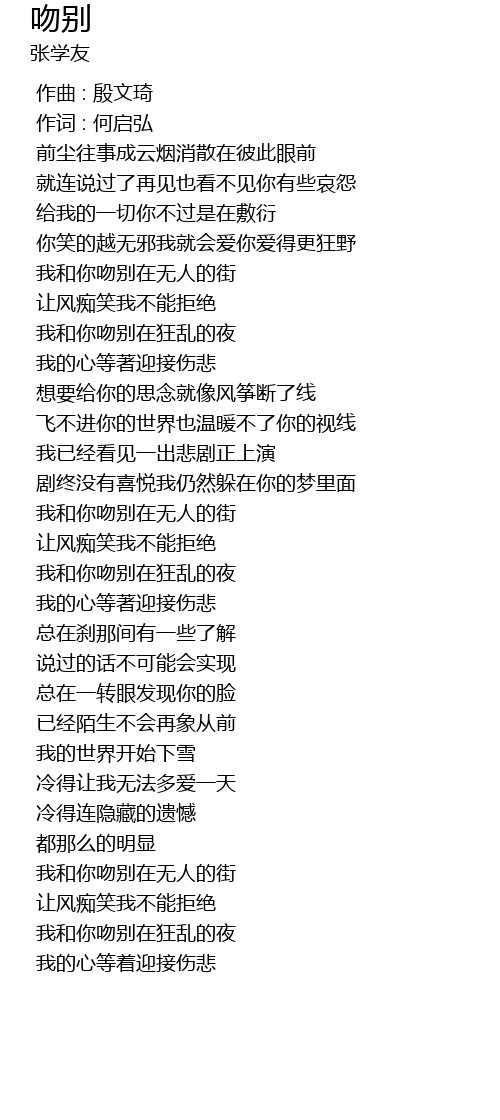 | [02:00.400] | wǒ hé nǐ wěn bié zài wú rén de jiē |