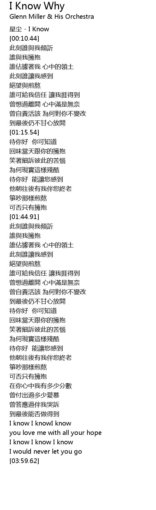 | [03:38.60] | I know I knowI know |
