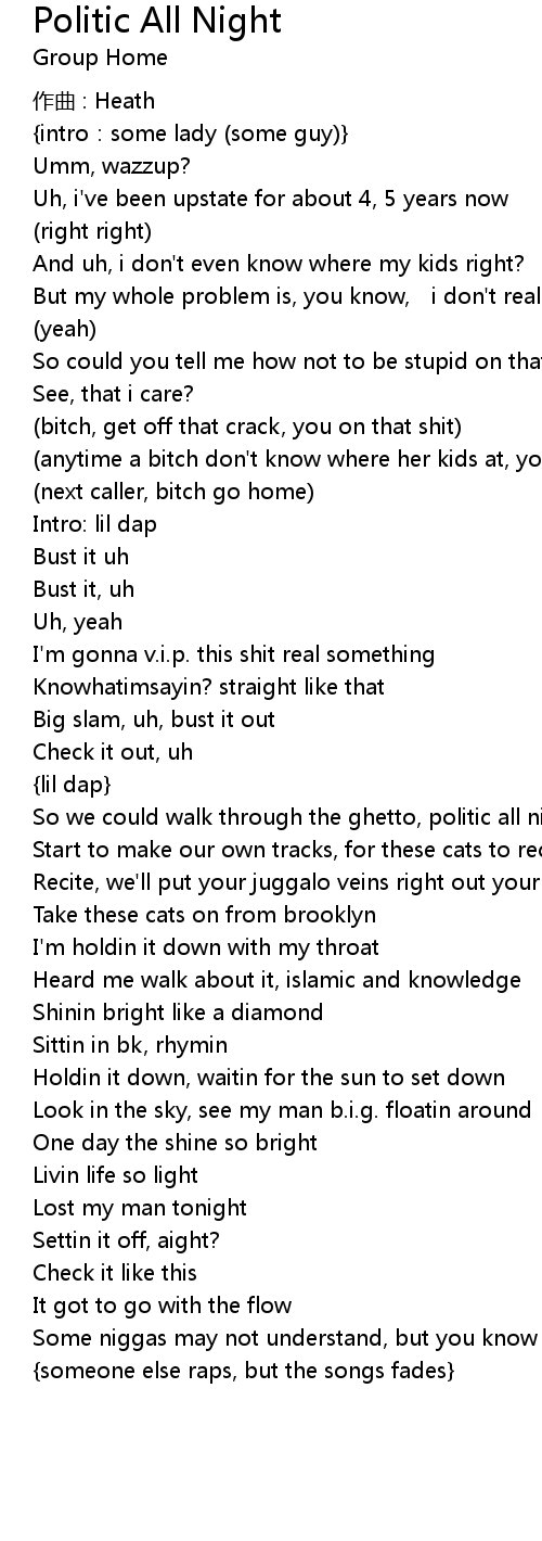 | So we could walk through the ghetto, politic all night | |