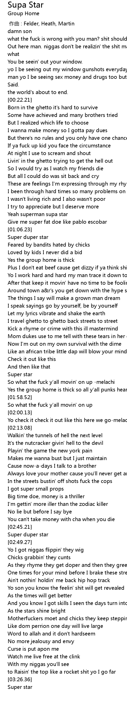 | [01:55.99] | Yes the group home is thick so all y'all punks hear this (x3) |