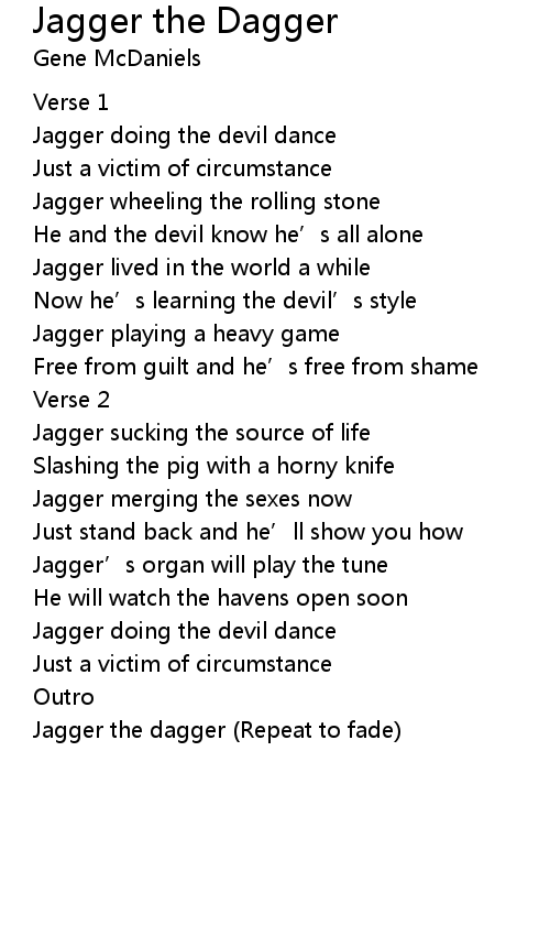 | 歌曲 | Jagger the Dagger |