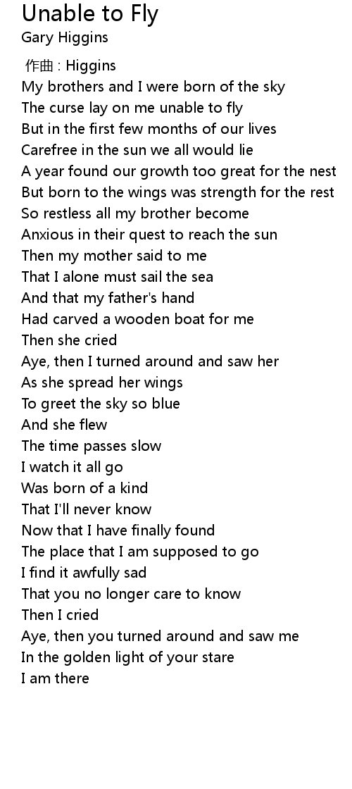 | 歌曲 | Unable to Fly |