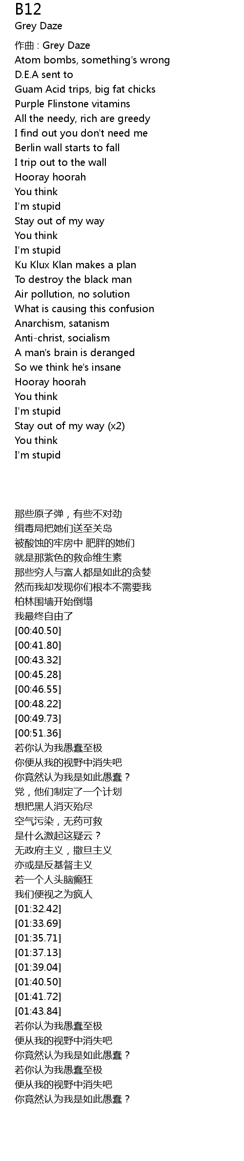 | [01:20.77] | 想把黑人消灭殆尽 |
