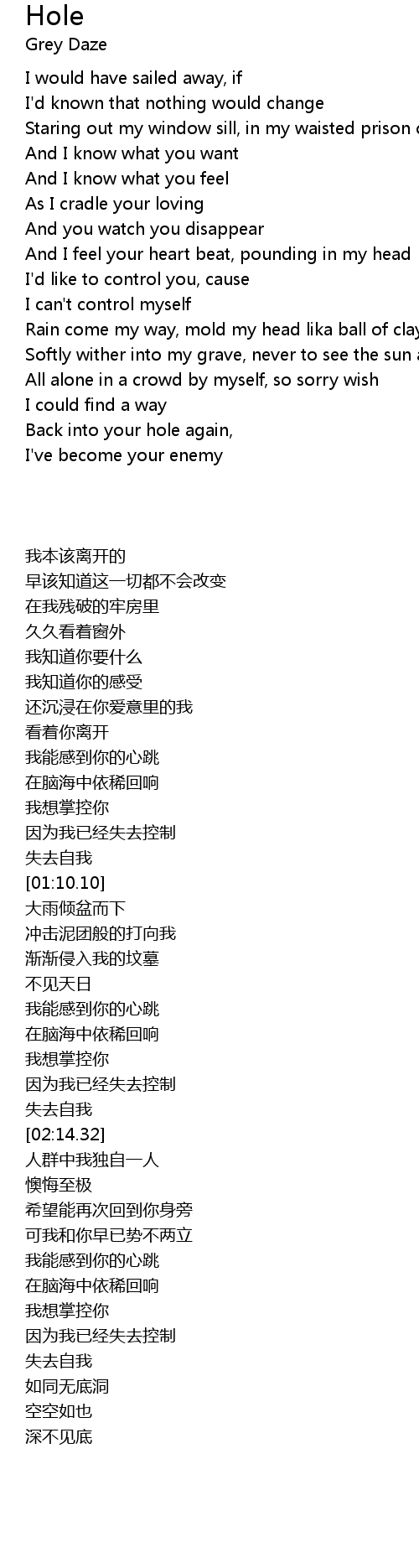 | [02:10.49] | 失去自我 |