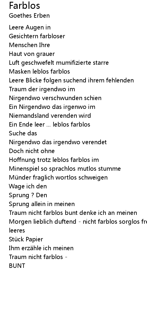 | Morgen lieblich duftend nicht farblos sorglos freue ich mich und begrü e ein leeres | |