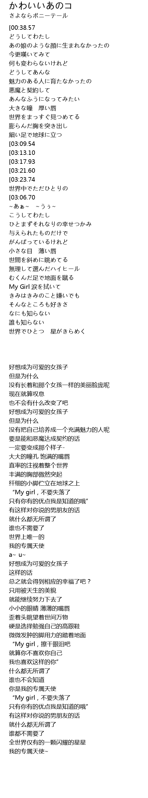 | [00:38.57] | 好想成为可爱的女孩子 |