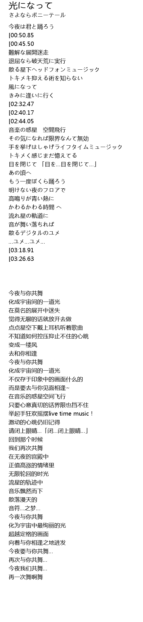 | [00:04.13][00:50.85][02:35.63] | 宇宙の光になって |