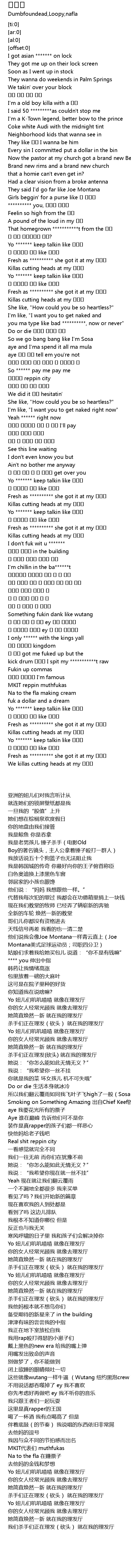 | [03:17.49] | 这些就像wutang一样牛逼 (Wutang 纽约黑泡crew) |