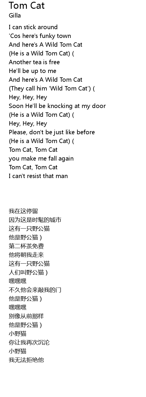 | [00:21.000] | He is a Wild Tom Cat |