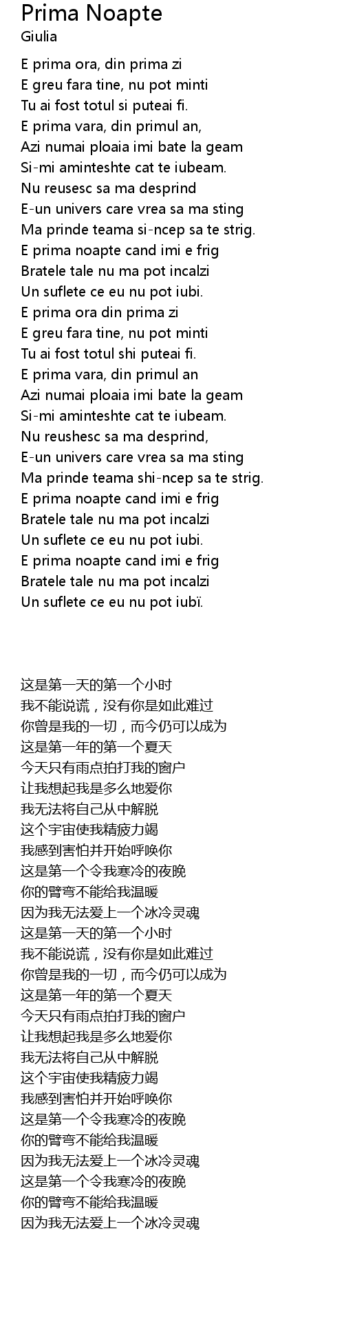 | 歌曲 | Prima Noapte |