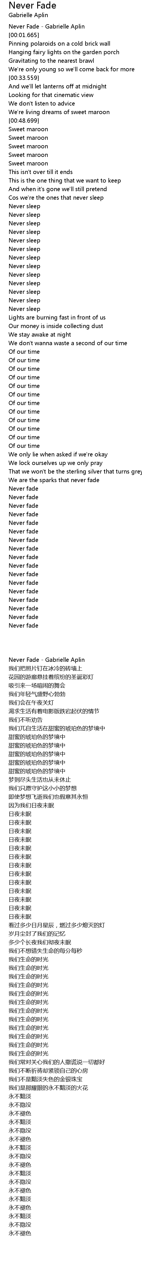 Never Fade - Gabrielle Aplin |