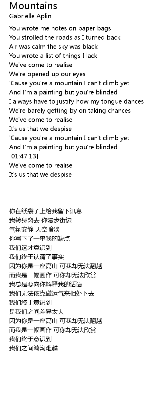 'Cause you're a mountain I can't climb yet |
