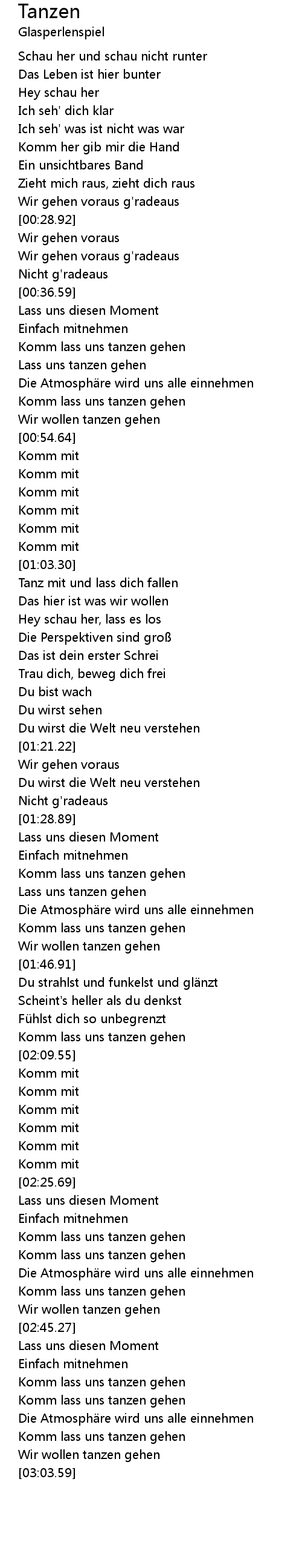 | [00:41.23] | Komm lass uns tanzen gehen |