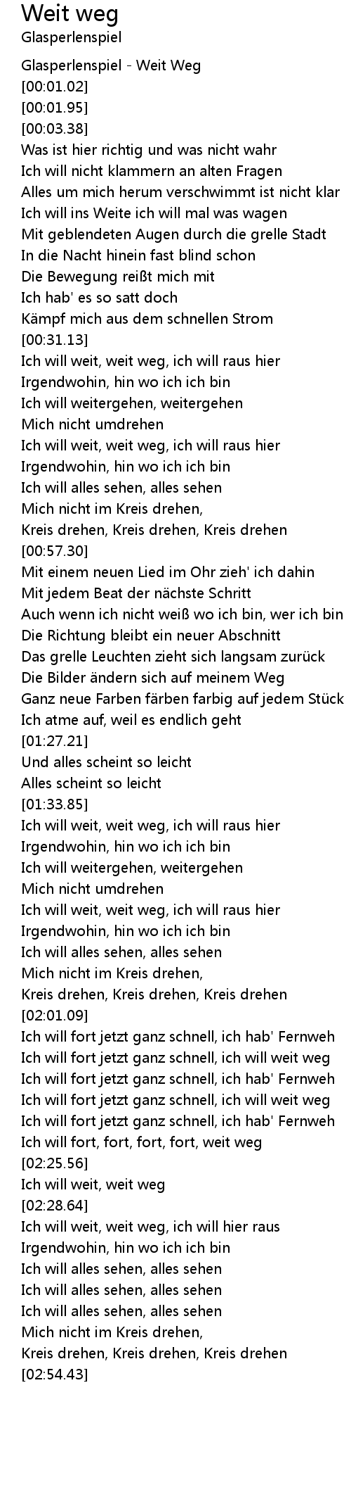 | [00:00.00] | Glasperlenspiel Weit Weg |