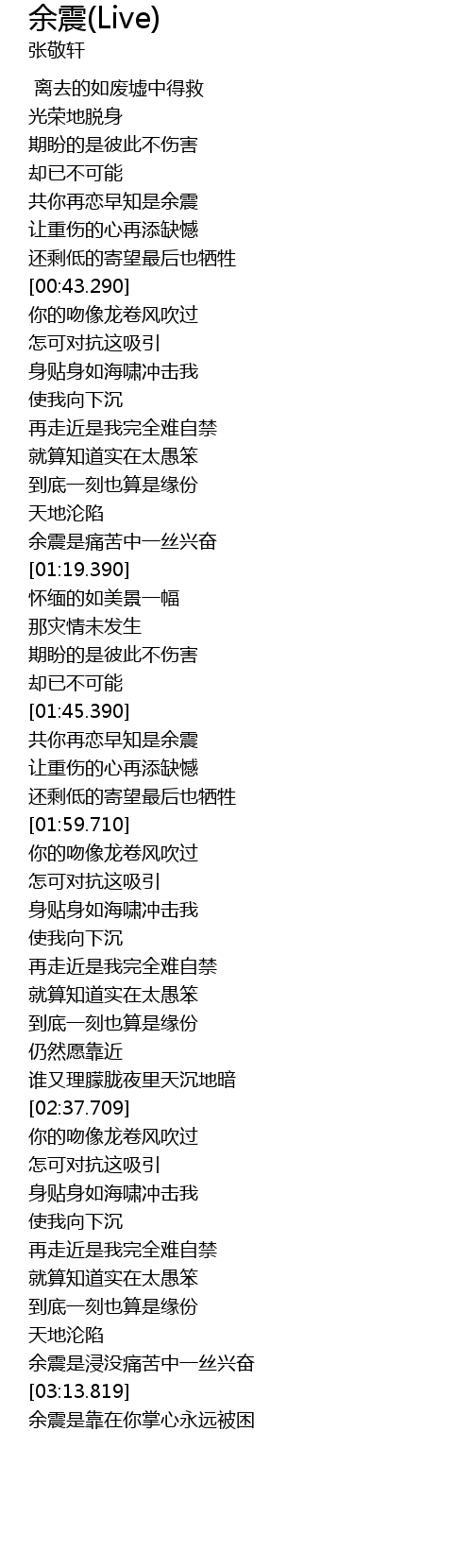 | [03:15.170] | 余震是靠在你掌心永远被困 |