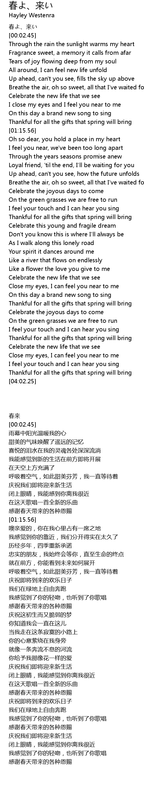 | [02:16.54] | Thankful for all the gifts that spring will bring |